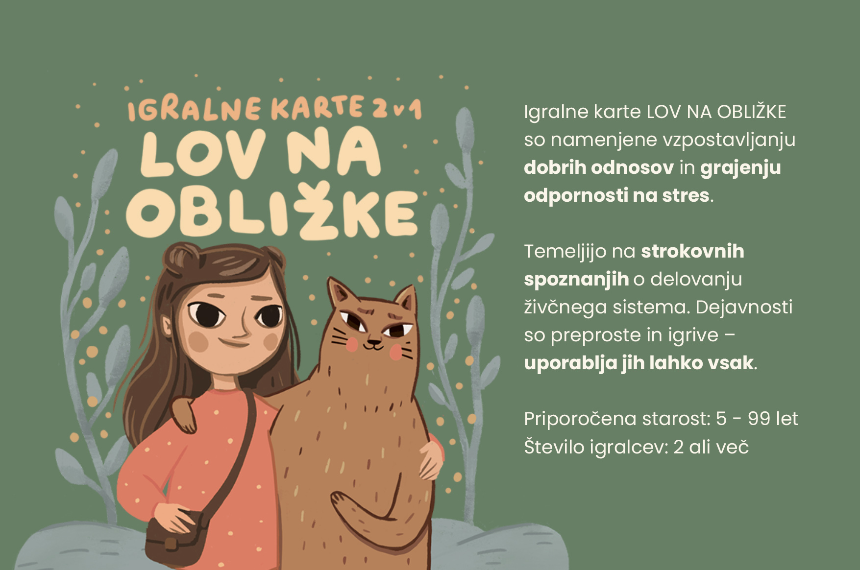Igralne karte Lov na obližke vključujejo preproste in igrive dejavnosti za vso družino. Namenjene so vzpostavljanju dobrih odnosov in grajenju odpornosti na stres.
